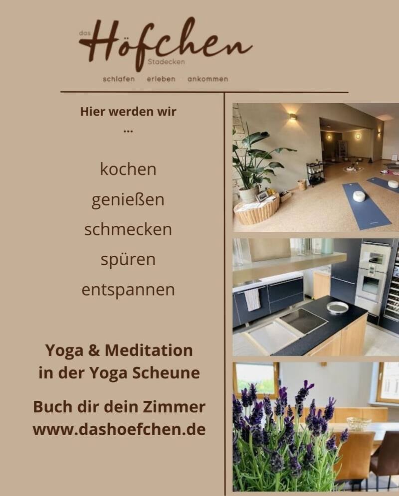 Sei dabei und lass uns gemeinsam die Welt des Ayurveda genießen. Kochen, schmecken, riechen, Yoga und Meditation. Schenke dir einen Nachmittag voller wunderbarer Momente für deine Seele. Im „Das Höfchen“ in Stadecken-Elsheim. Wenn du möchtest, darfst du dich hier auch über www.dashoefchen.de für eine Übernachtung einbuchen um deinen Tag in aller Ruhe ausklingen zu lassen. Am Morgen erwartet dich dann ein Ayurvedisches Frühstück bevor du dich wieder auf den Weg nach Hause machst.